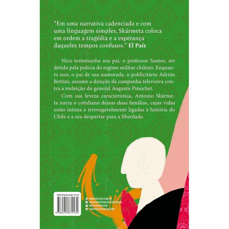 ““Em uma narrativa cadenciada e com uma linguagem simples, Skármeta coloca em ordem a tragédia e a esperança daqueles tempos confusos.” – El País Em O dia em que a poesia derrotou um ditador, acompanhamos o cotidiano de duas famílias cujas vidas estão íntima e irrevogavelmente ligadas à história do Chile e a seu despertar para a liberdade. Em uma quarta-feira de 1988, Santos, professor de filosofia de uma das escolas mais tradicionais de Santiago, é levado pela polícia durante uma de suas aulas. Prisões como aquela não são raras no Chile de então, mas para Nico, que assiste à cena junto aos outros alunos, dessa vez é diferente. Ele é filho do professor, e a partir desse momento a única coisa que pode fazer é encontrar uma forma de ter o pai de volta. A namorada de Nico lhe dá apoio, mas a família de Patricia Bettini também sente os efeitos da ditadura instaurada em 1973. Seu pai, Adrián Bettini, outrora um bem-sucedido publicitário, agora é boicotado pelo regime e sobrevive fazendo pequenos trabalhos informais. Uma luz aparece no fim do túnel: pressionado pela comunidade internacional, Pinochet anuncia um plebiscito pelo qual a população decidirá se o general pode ou não concorrer a um novo mandato. É a chance de Adrián retomar sua carreira, e de Santos, como tantas outras vítimas da repressão política, encontrar a liberdade. Enquanto Nico procura notícias sobre o paradeiro do pai, temendo a todo instante receber a pior delas, Adrián assume a campanha do “Não” à reeleição de Pinochet. Ele tem apenas quinze minutos de propaganda na TV para transformar a história do Chile. Quinze minutos, contra os quinze anos de Pinochet à frente do país, para convencer uma nação de que vale a pena lutar pela democracia. Em O dia em que a poesia derrotou um ditador, Antonio Skármeta, um dos principais autores chilenos das últimas décadas, tece, com sua prosa delicada, uma narrativa impactante sobre a relação entre pais e filhos em momentos difíceis da história e sobre como a alegria conseguiu devolver as cores a um país silenciado. “