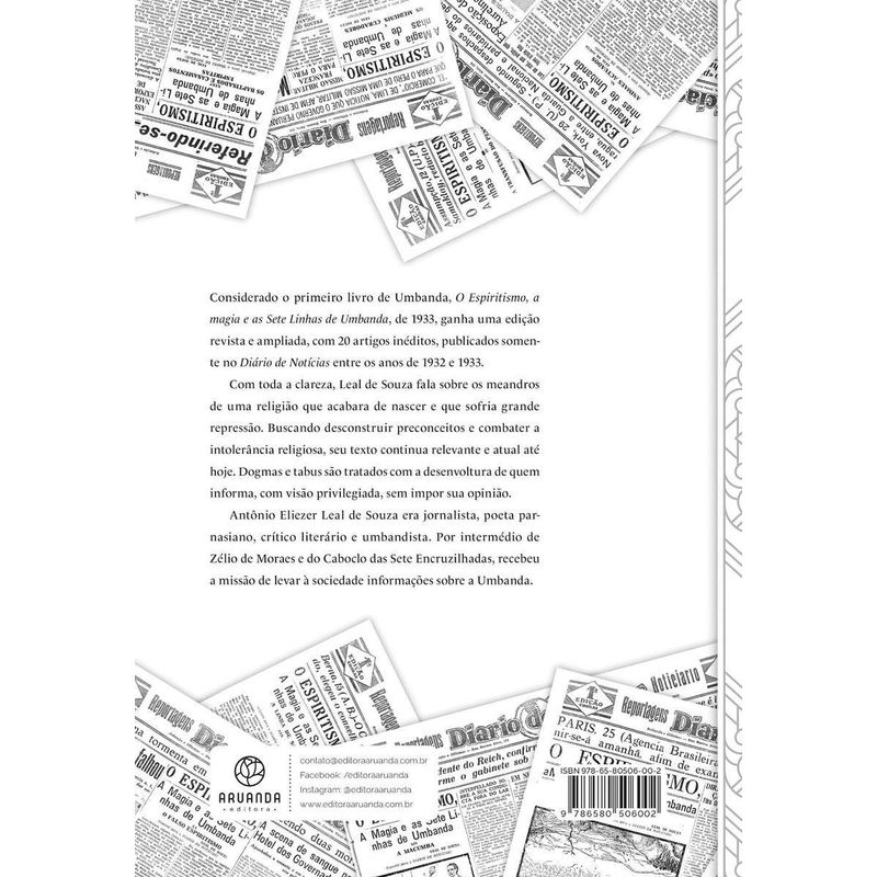 Trata-se de um livro histórico, considerado como o primeiro livro publicado a ter como tema as Sete Linhas de Umbanda e Demanda – suas rotinas, fundamentos e doutrina. Esse livro foi criado a partir da compilação dos artigos publicados por Leal de Souza, entre os anos de 1932 e 1933, no Diário de Notícias da então capital federal, o Rio de Janeiro. Além daqueles que estavam na primeira edição de seu livro, conseguimos resgatar outros 20 artigos, ainda inéditos, do autor. De terça a domingo, na primeira página do caderno de reportagens, Leal de Souza mostrava, com toda a clareza, os meandros de uma religião que acabara de nascer e que sofria grande repressão, inclusive, policial. Com suas palavras, buscava destruir o preconceito por meio da informação e a intolerância religiosa que perseguia seus irmãos. Temas e tabus, como despachos, orixás, vidência, obsessão e muitos outros são tratados com a desenvoltura de quem informa, com visão privilegiada, sem impor sua opinião. Esta nova edição contará com os seguintes paratextuais: – Prefácio de Nikolas Peripolli (médium umbandistas criador do projeto Umbandas e dirigente espiritual da Casa das Almas Santas e Benditas, além de ser palestrante e ministrar diversos cursos na área) – Posfácio de Diamantino Fernandes Trindade (Sacerdote do Templo Cristão Umbanda do Brasil e Ministro religioso da Casa de Cultura Umbanda do Brasil e autor com diversos livros publicados) – Texto de Leonardo Cunha (bisneto de Zélio Fernandino de Moraes e atual dirigente da Tenda Espírita Nossa Senhora da Piedade) – Texto de Maurício Ribeiro (doutor em comunicação e semiótica – PUC-SP – e pós-doutorando na ECO-UFRJ sobre a “construção do imaginário midiático da Umbanda”) – Texto e pesquisa de Nathália Fernandes (historiadora, professora e mestre em História Social pela UFF – estudiosa sobre “Repressão policial às religiões de matriz afro-brasileira no período do Estado”)