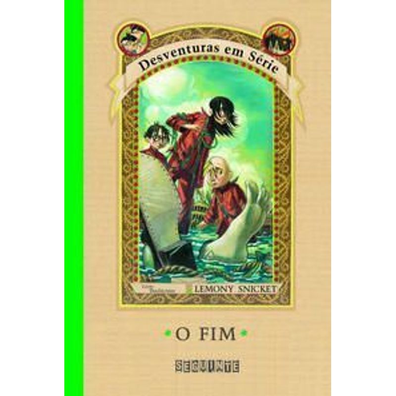 Finalmente, o tão esperado 13o. volume que encerra a longa narrativa da terrível saga dos órfãos Sunny, Klaus e Violet. Mesmo que a vida dos três oferecesse mistério e martírio suficientes para preencher milhares de páginas, Lemony Snicket garante ter chegado à reta final da solene tarefa que lhe ocupou tantos anos de vida. Mas, como sempre, vale o alerta: aqueles que encontram prazer e alegria em outras coisas, que passem ao largo deste livro – pois é bem possível que O fim acabe com a vida do leitor mais suscetível. Mesmo quem enfrentou corajosamente os doze volumes anteriores não irá suportar tanta desgraça, como uma tempestade bravia, uma bebida suspeita, um bando de ovelhas selvagens, uma gaiola de passarinho gigante e ornamentada, e um segredo de fato assustador sobre os pais dos Baudelaire. Para completar, diferentemente dos outros livros da série, neste último o grande vilão, conde Olaf, está presente desde o início da narrativa. Ele e os Baudelaire começam juntos: estão todos no barco que os salvou no final de O penúltimo perigo. Atracam em uma ilha, que, perdida no meio do oceano, é povoada por náufragos e comandada por Ishmael, um homem barbudo que tem os pés feridos sempre cobertos de barro. Tudo muito suspeito… Será que todo o mistério finalmente será revelado? Afinal, quem são os pais dos órfãos Baudelaire, o que é C.S.C., e o que acontecerá com todos os personagens da série? Bem, talvez O fim não seja para qualquer um. Por isso é de fato muito recomendável que se faça um check-up cardíaco antes de ler o livro.