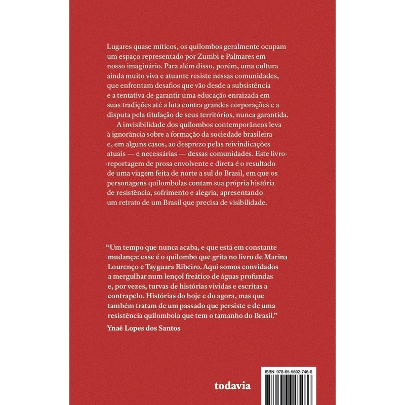 Lugares quase míticos, os quilombos geralmente ocupam um espaço representado por Zumbi e Palmares em nosso imaginário. Para além disso, porém, uma cultura ainda muito viva e atuante resiste nessas comunidades, que enfrentam desafios que vão desde a subsistência e a tentativa de garantir uma educação enraizada em suas tradições até a luta contra grandes corporações e a disputa pela titulação de seus territórios, nunca garantida. A invisibilidade dos quilombos contemporâneos leva à ignorância sobre a formação da sociedade brasileira e, em alguns casos, ao desprezo pelas reivindicações atuais — e necessárias — dessas comunidades. Este livro–reportagem de prosa envolvente e direta é o resultado de uma viagem feita de norte a sul do Brasil, em que os personagens quilombolas contam sua própria história de resistência, sofrimento e alegria, apresentando um retrato de um Brasil que precisa de visibilidade.