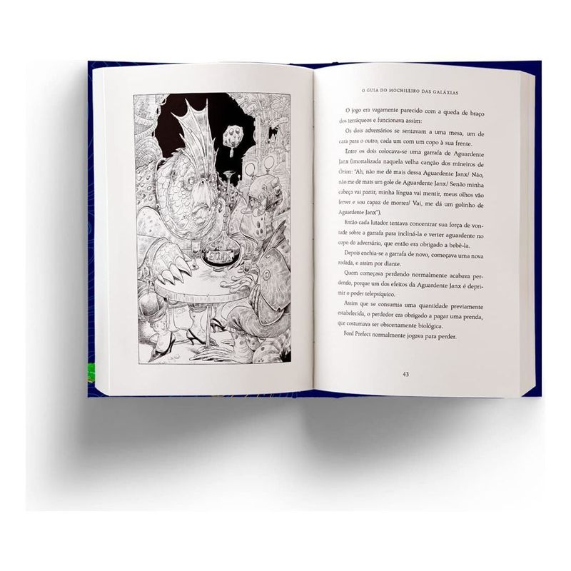Para celebrar o aniversário de 42 anos deste ícone da cultura pop, O Guia do Mochileiro das Galáxias ganha nova edição com ilustrações do premiado Chris Riddell. NÃO ENTRE EM PÂNICO Arthur Dent já estava tendo um dia péssimo antes mesmo de a Terra ser demolida para abrir espaço para uma via expressa hiperespacial. E depois disso as coisas ficaram muito, muito piores. Com apenas uma toalha, um peixinho amarelo e um livro, Arthur vai ser obrigado a navegar por um universo hostil na companhia de alienígenas pouco confiáveis e viver as mais estranhas aventuras. Sua sorte é que o livro em questão é O Guia do Mochileiro das Galáxias… “Uma das maiores conquistas da comédia. Uma obra de um gênio impressionante” – David Walliams “Realmente muito divertido.” – Michael Palin “Estranho e maravilhoso.” – Eoin Colfer “Este livro mudou a minha vida. É literalmente de outro mundo.” – Tom Baker