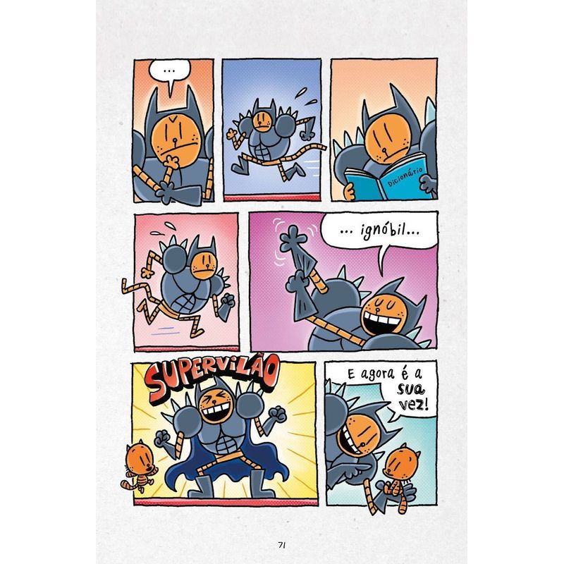 O Homem-Cão está de volta — e dessa vez ele não está sozinho! No quarto volume da série do criador do Capitão Cueca, nosso cãopanheiro contará com a ajuda de um gatinho para enfrentar mais uma vez seu arqui-inimigo: o gato Pepê. Quando o oficial Rocha e seu cachorro Greg sofrem um acidente, o único jeito de os dois sobreviverem é fundindo a cabeça do cão com o corpo do policial — e é assim que nasce o Homem-Cão, o grande herói da cidade! Com um grande coração, ele sempre espera o melhor das pessoas (e dos gatos), por isso ainda está aprimorando suas habilidades no trabalho. Nosso herói com olfato apurado para sentir no ar o cheiro da injustiça agora tem um pequeno ajudante felino: o Pepezinho! Juntos, o Cãovaleiro das Trevas e o Supergatinho precisam descobrir o paradeiro de uma grande atriz de cinema que desapareceu na cidade. Será que a babá misteriosa que chegou na cidade tem alguma coisa a ver com essa história? Nossos heróis precisam farejar esse mistério antes que Pepê, o gato mais malvado do mundo, apronte mais uma vez.