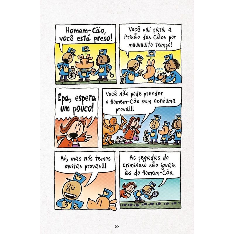 No sexto volume da série Homem-Cão, escrita e ilustrada pelo mesmo criador do Capitão Cueca, nosso super-herói é acusado de ser um grande vilão! Com alusões ao clássico da literatura O chamado selvagem, o Homem-Cão vai ter que provar sua inocência. Quando o oficial Rocha e seu cachorro Greg sofreram um acidente, o único jeito de os dois sobreviverem era fundindo a cabeça do cão com o corpo do policial — e foi assim que nasceu o Homem-Cão, o maior protetor da cidade! Ao lado do gatinho Pepezinho, do robô Formigão, do Chefe e de outros aumigos, nosso herói vive muitas aventuras para conseguir proteger todos os cidadãos. Mas será que o Homem-Cão é, na verdade, o grande vilão dessa história? É nisso que um grupo de animais malvados quer que todos acreditem. Condenado por um crime que não cometeu, nosso herói é exilado para a Prisão dos Cães. Enquanto os Superamigos tentam provar sua inocência, o Homem-Cão luta para encontrar seu lugar entre cachorros e pessoas. Será que algum dia ele se encaixará totalmente em algum desses mundos? Este livro é indicado para crianças a partir de 7 anos.