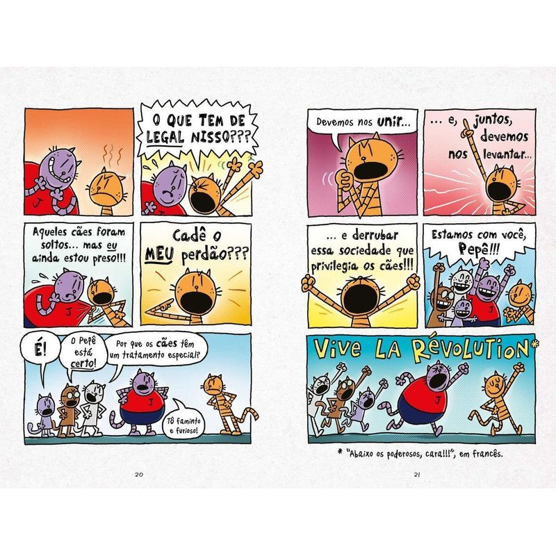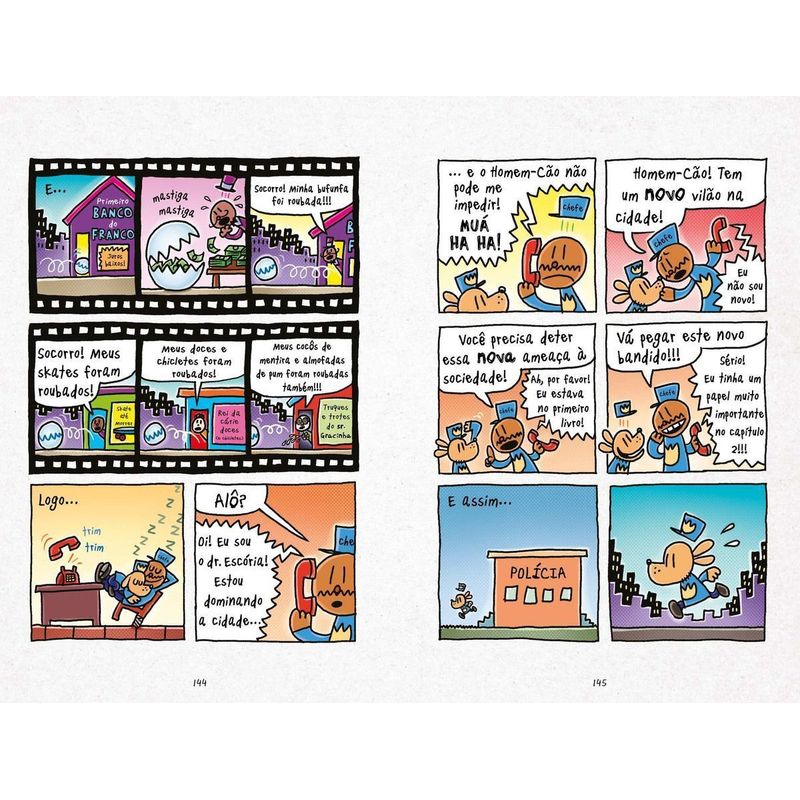 No sétimo volume da série O Homem-Cão, escrita e ilustrada pelo mesmo criador do Capitão Cueca, nosso herói precisa enfrentar novos medos e um cientista maluco! Isso tudo inspirado no clássico Por quem os sinos dobram, de Ernest Hemingway. Quando o oficial Rocha e seu cachorro Greg sofreram um acidente, o único jeito de os dois sobreviverem era fundindo a cabeça do cão com o corpo do policial — e foi assim que nasceu o Homem-Cão, o maior protetor da cidade! Ao lado dos Superamigos Pepezinho, Formigão, do Chefe e do não tão miauvado gato Pepê, nosso herói precisa enfrentar muitos obstáculos para derrotar os maiores vilões da cidade. Desta vez, os Superamigos estão se esforçando para que o Homem-Cão mude alguns péssimos hábitos. E quando nosso herói, que antes era obcecado por bolas, passa a ter muito medo delas, ele acaba se tornando alvo de um vilão (nem tão) novo! Enquanto isso, Pepê finalmente é solto da Prisão dos Gatos para começar uma vida nova com Pepezinho. Até que seu pai aparece e… nosso amigo felino precisa encarar o passado para lutar por quem realmente importa e salvar o Homem-Cão de mais uma enrascada.