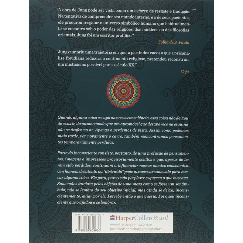 “A obra de Jung pode ser vista como um esforço de resgate e tradução. Na tentativa de compreender seu mundo interno, e o de seus pacientes, ele procurou resgatar o universo simbólico humano que habitualmente se encontra sob o poder das religiões, dos místicos ou das filosofias orientais. Jung foi um escritor prolífico.”Folha de S. Paulo”Jung cumpriu uma trajetória em que, a partir dos cacos a que a psicanálise freudiana reduzira o sentimento religioso, pretendeu reconstruir um misticismo possível para o século XX.”VejaQuando alguma coisa escapa da nossa consciência, essa coisa não deixou de existir, do mesmo modo que um automóvel que desaparece na esquina não se desfez no ar. Apenas o perdemos de vista. Assim como podemos, mais tarde, ver novamente o carro, também reencontramos pensamentos temporariamente perdidos.Parte do inconsciente consiste, portanto, de uma profusão de pensamentos, imagens e impressões provisoriamente ocultos e que, apesar de terem sido perdidos, continuam a influenciar nossas mentes conscientes. Um homem desatento ou “distraído” pode atravessar uma sala para buscar alguma coisa. Ele para, parecendo perplexo; esqueceu o que buscava. Suas mãos tateiam pelos objetos de uma mesa como se fosse um sonâmbulo; não se lembra do seu objetivo inicial, mas ainda se deixa, inconscientemente, guiar por ele. Percebe então o que queria. Foi o seu inconsciente que o ajudou a se lembrar.