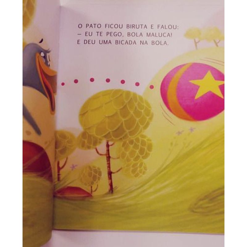 A brincadeira de uma bola começa no mato, vai até o sapo, o pato, a jiboia, o peixe e termina no mato. Tudo por meio de frases curtas, sílabas simples, diversão e surpresa.