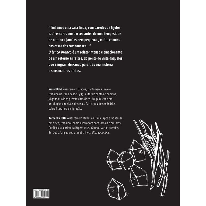 Uma história comovente retratada com a intensidade e a força das xilogravuras em preto e branco e um belo texto poético. Permeado por memórias da infância do narrador e de sua vida rural deixada para trás, O lenço branco expõe a angústia e a alegria do retorno às raízes. Um emocionante relato, do ponto de vista daqueles que emigram deixando para trás história, cultura e afetos.