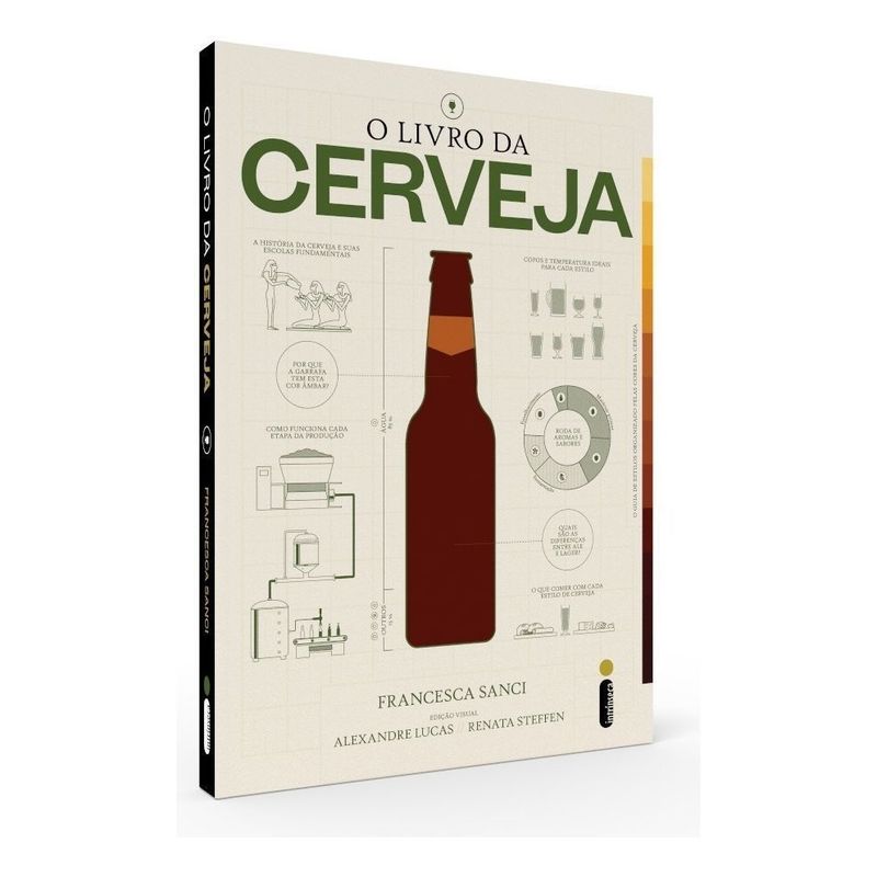 Um guia prático e repleto de informações valiosas sobre a bebida mais popular do Brasil Cerva, breja, gelada… a bebida mais popular do país é conhecida por vários nomes e conquista geração após geração de novos apaixonados. Ainda mais porque, nas últimas décadas, o país vem experimentando um boom de novos rótulos artesanais, que começaram a disputar espaço nas prateleiras dos mercados e no gosto do brasileiro. Essa pluralidade cada vez maior reforça o que muitos já sabem: o mundo da cerveja é rico, cheio de complexidades, aromas, sabores e curiosidades. É a partir dessa constatação que a sommelière brasileira Francesca Sanci se uniu aos designers Alexandre Lucas e Renata Steffen com o objetivo de criar um guia essencial para novos e velhos adoradores da cerveja. Com ilustrações e infográficos incríveis, o trio oferece uma gama de informações que aborda desde a história da bebida, a forma de servir e os ingredientes até as escolas mais importantes, os estilos, as harmonizações e muito mais. Ao longo de 272 páginas com projeto gráfico totalmente colorido, os leitores também conhecerão métodos de fabricação, referências comerciais de cada estilo e até receitas que levam cerveja em seu preparo: tudo para enriquecer a experiência com a bebida e oferecer recursos para um consumo com mais significado. Um livro ideal para quem ama cerveja ou conhece alguém que ama. Ou seja, um livro ideal para todos.