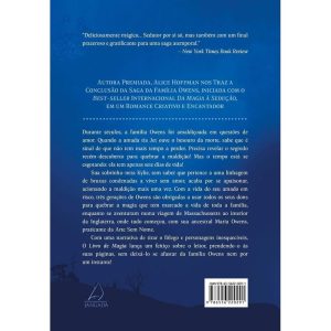 Esta é a parte final da saga das Owens, tão aguardada pelos fãs de Da Magia à Sedução, best-seller que deu origem ao filme cult de mesmo nome. Agora, em Livro de Magia, as Owens vão se unir para quebrar, de uma vez, a maldição relacionada ao amor que paira sobre as mulheres da família. Quando a amada tia Jet ouve o besouro da morte, sabe que é sinal de que não tem mais tempo a perder: precisa revelar o segredo recém-descoberto para quebrar o mal. Mas o tempo está se esgotando: ela tem apenas sete dias de vida! No mesmo momento, sua sobrinha-neta Kylie, sem saber que pertence a uma linhagem de bruxas condenadas, acaba por se apaixonar. Com a vida do seu amado em risco, três gerações de Owens são obrigadas a usar todos os seus dons para quebrar a magia que tem marcado a vida de todas. Com uma narrativa de tirar o fôlego e personagens inesquecíveis, O Livro de Magia prende o leitor às suas páginas do começo ao fim.