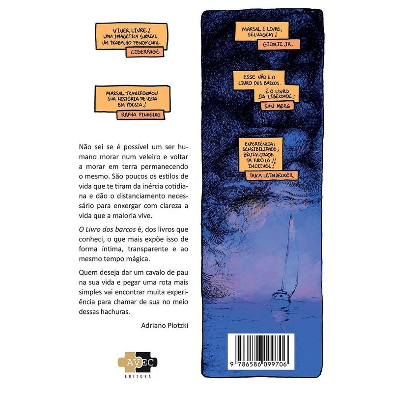 O Livro dos Barcos conta a histo´ria do ano em que – sem dizer nada pra´ ningue´m – decidi dar o grande pulo e preparar meu veleiro pra´ sair pelo mundo. Em que descrevo o ridi´culo e as trapalhadas de um comandante inexperiente que na~o sabia nem rizar a mestra. Pior: algue´m aprendendo aos trancos que mudar de vida e´ possi´vel, mas na~o tem ma´gica.E como, ao final, me descobri em paz. Uma paz que nunca tive antes. A paz de se descobrir em casa nesse nosso planeta grande, lindo e confuso.