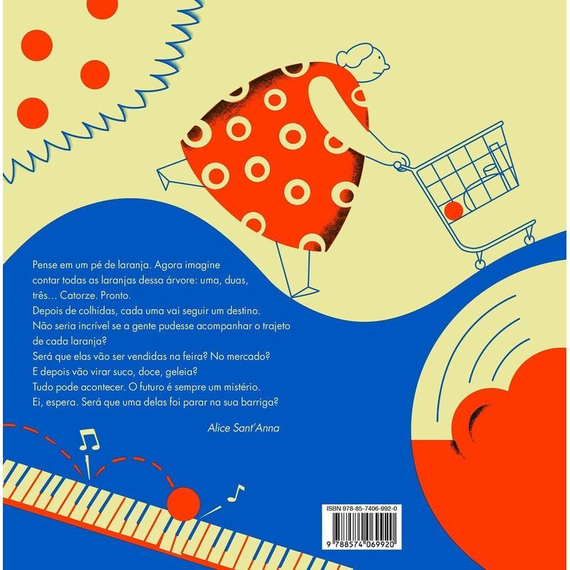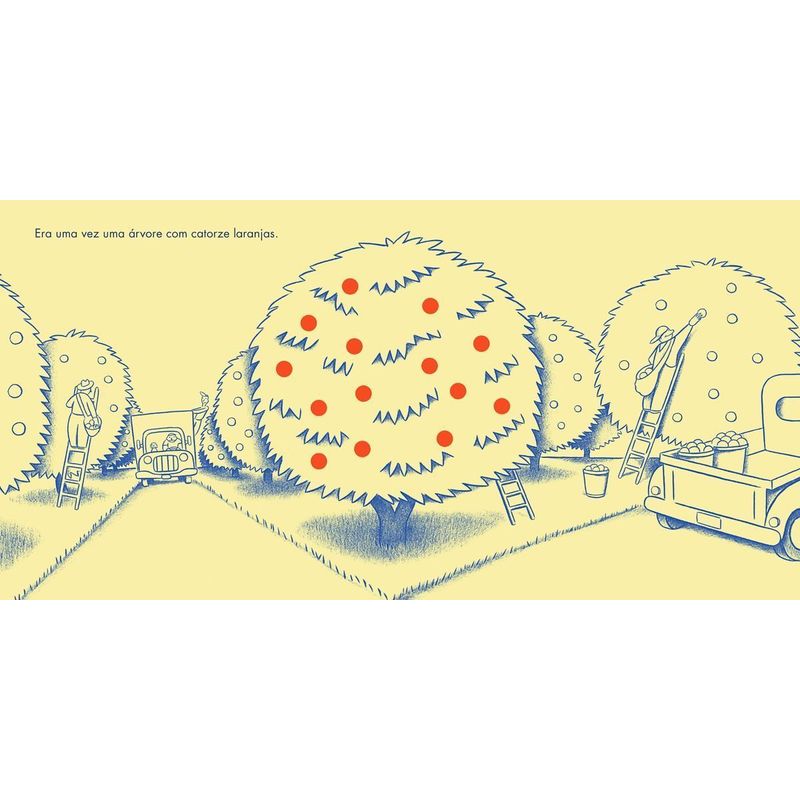 Neste livro ilustrado sobre laranjas e números, acompanhamos a jornada inusitada de catorze frutos depois da colheita. O que será que acontece com cada laranja depois que é colhida da laranjeira? Se cada um de nós pudesse acompanhar seus destinos, com certeza ficaríamos surpresos com a diversidade de trajetos que uma laranja pode seguir. Afinal, uma laranja pode virar suco, geleia… e até ir parar na nossa barriga! Neste livro ilustrado do premiado artista Richard McGuire, autor do aclamado Aqui e do cativante Noite vira dia, os leitores vão contar as catorzes laranjas retratadas enquanto descobrem seus fins inusitados, com um humor ideal para agradar pessoas de todas as idades. Indicado para leitores a partir de 4 anos.