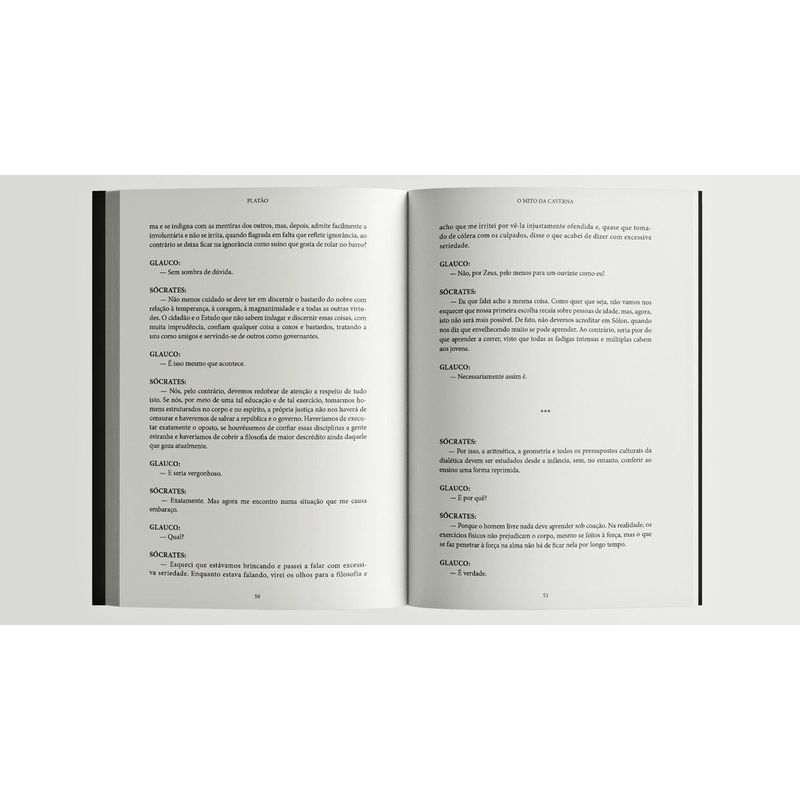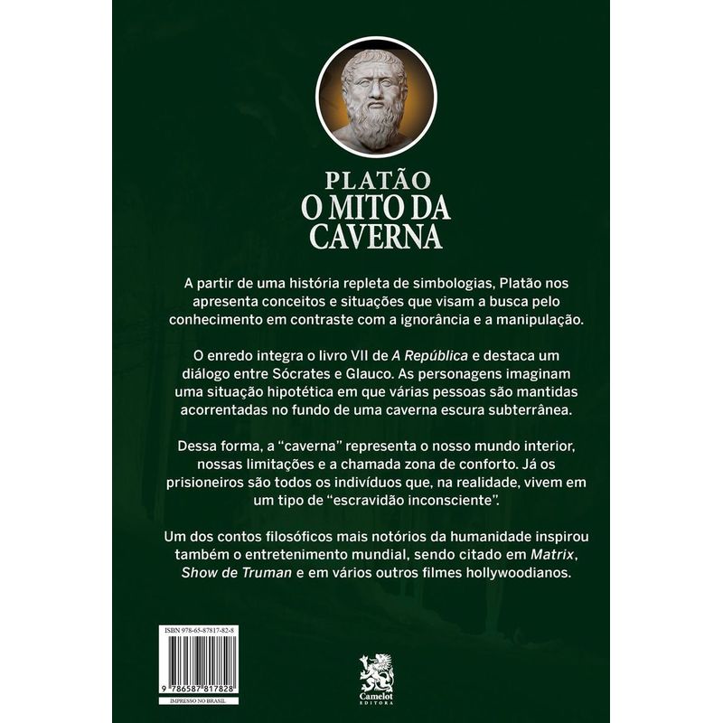 A partir de uma história repleta de simbologias, Platão nos apresenta conceitos e situações que visam a busca pelo conhecimento em contraste com a ignorância e a manipulação. O enredo integra o livro VII de A República e destaca um diálogo entre Sócrates e Glauco. As personagens imaginam uma situação hipotética em que várias pessoas são mantidas acorrentadas no fundo de uma caverna escura subterrânea. Dessa forma, a “caverna” representa o nosso mundo interior, nossas limitações e a chamada zona de conforto. Já os prisioneiros são todos os indivíduos que, na realidade, vivem em um tipo de “escravidão inconsciente”. Um dos contos filosóficos mais notórios da humanidade inspirou também o entretenimento mundial, sendo citado em Matrix, Show de Truman e em vários outros filmes hollywoodianos.