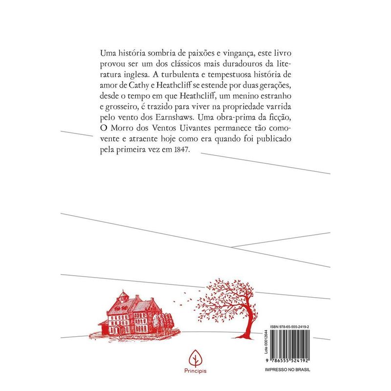 Uma história sombria de paixões e vingança, este livro provou ser um dos clássicos mais duradouros da literatura inglesa. A turbulenta e tempestuosa história de amor de Cathy e Heathcliff se estende por duas gerações, desde o tempo em que Heathcliff, um menino estranho e grosseiro, é trazido para viver na propriedade varrida pelo vento dos Earnshaws. Uma obra-prima da ficção, O Morro dos Ventos Uivantes permanece tão comovente e atraente hoje como era quando foi publicado pela primeira vez em 1847.