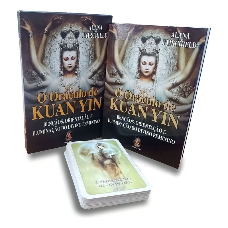 Você foi atraído a este oráculo porque está pronto para crescer espiritualmente, para ser um farol na evolução da consciência neste planeta, para ser corajoso e escolher o amor em vez do medo. Você é uma Alma belíssima e tem o poder de cocriar uma vida linda através da qual a luz de sua Alma possa irradiar e elevar outras almas. Kuan Yin é a Mãe da Compaixão. Ela nos guia para nossa iluminação, o que significa ser capaz de viver em harmonia e unidade com o Amor que é, e render-se a esse Amor. A Iluminação não deve ser um objetivo espiritual distante, mas algo que podemos escolher viver a qualquer tempo, optando pelo amor, pela gentileza, pela compaixão e pela sabedoria, bem como ao Divino Feminino. Este oráculo contém 44 cartas coloridas belíssimas e o livro que explica o significado de cada uma delas. Om Kuan Chi Yin Poosa! Om Mani Padme Hum!