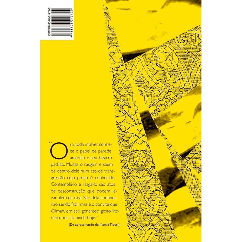Um clássico da literatura feminista pela primeira vez no Brasil. Uma mulher fragilizada emocionalmente é internada, pelo próprio marido, em uma espécie de retiro terapêutico em um quarto revestido por um obscuro e assustador papel de pa amarelo. Por anos, desde a sua publicação, o livro foi considerado um assustador conto de terror, com diversas adaptações para o cinema, a última em 2012. No entanto, devido a trajetória da autora e a novas releitura, é hoje considerado um relato pungente sobre o processo de enlouquecimento de uma mulher devido à maneira infantilizada e machista com que era tratada pela família e pela sociedade.