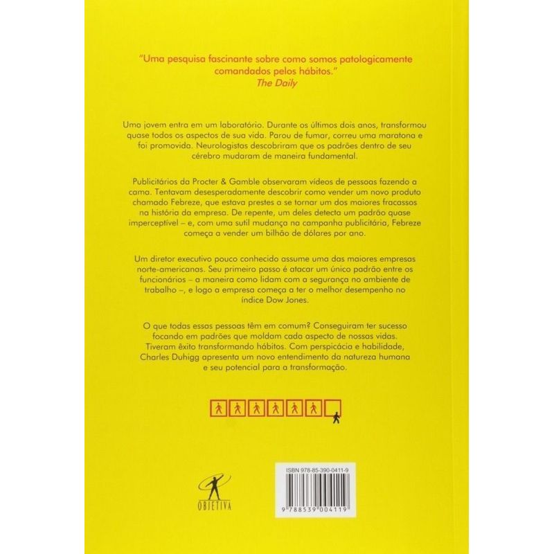 Charles Duhigg, repórter investigativo do New York Times, mostra que a chave para o sucesso é entender como os hábitos funcionam – e como podemos transformá-los. Durante os últimos dois anos, uma jovem transformou quase todos os aspectos de sua vida. Parou de fumar, correu uma maratona e foi promovida. Em um laboratório, neurologistas descobriram que os padrões dentro do cérebro dela mudaram de maneira fundamental. Publicitários da Procter & Gamble observaram vídeos de pessoas fazendo a cama. Tentavam desesperadamente descobrir como vender um novo produto chamado Febreze, que estava prestes a se tornar um dos maiores fracassos na história da empresa. De repente, um deles detecta um padrão quase imperceptível – e, com uma sutil mudança na campanha publicitária, Febreze começa a vender um bilhão de dólares por anos. Um diretor executivo pouco conhecido assume uma das maiores empresas norte-americanas. Seu primeiro passo é atacar um único padrão entre os funcionários – a maneira como lidam com a segurança no ambiente de trabalho -, e logo a empresa começa a ter o melhor desempenho no índice Dow Jones. O que todas essas pessoas tem em comum? Conseguiram ter sucesso focando em padrões que moldam cada aspecto de nossas vidas. Tiveram êxito transformando hábitos. Com perspicácia e habilidade, Charles Duhigg apresenta um novo entendimento da natureza humana e seu potencial para a transformação.