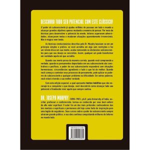 Descubra todo seu potencial com este clássico, agora em capa dura e com conteúdo inédito. O poder do subconsciente já ajudou milhões de pessoas em todo o mundo a alcançar grandes objetivos apenas mudando a maneira de pensar. Por meio de técnicas para desenvolver todo o potencial da mente, leitores superaram as adversidades, alcançaram objetivos e mudaram situações aparentemente irreversíveis. Não é mágica, não é mito nem lenda. As técnicas revolucionárias descritas pelo Dr. Murphy baseiam-se em um princípio simples e prático: se você acredita em algo sem restrições e faz um retrato disso em sua mente, remove os obstáculos subconscientes para que seu desejo se concretize. Assim, qualquer um pode transformar em realidade aquilo em que acredita. Quando sua mente pensa corretamente, quando você compreende a verdade, quando os pensamentos depositados em seu subconsciente são construtivos, harmoniosos e pacíficos, o poder mágico do seu subconsciente responderá com situações harmoniosas, circunstâncias agradáveis, tudo o que há de melhor. Quando você começa a controlar seus processos de pensamento, pode aplicar os poderes do subconsciente a qualquer problema ou dificuldade. Em outras palavras, você estará na verdade. Com a descrição de histórias verídicas de sucesso, O poder do subconsciente é um guia para libertar o poder da mente que revela os segredos para melhorar um casamento, vencer medos, eliminar hábitos nocivos, curar pequenos problemas de saúde e obter promoções, prestígio, dinheiro e felicidade pessoal. Com essa edição especial em capa dura e textos inéditos que vão encorajar você a conquistar seus objetivos, você vai descobrir como alcançar todo seu potencial e finalmente conseguir a vida que sempre sonhou.