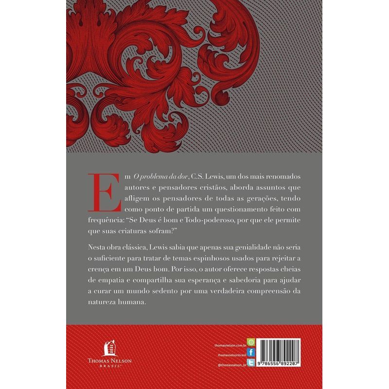 Em O problema da dor, C.S. Lewis, um dos mais renomados autores e pensadores cristãos, aborda assuntos que afligem os pensadores de todas as gerações, tendo como ponto de partida um questionamento feito com frequência: “Se Deus é bom e Todo-poderoso, por que ele permite que suas criaturas sofram?” Nesta obra clássica, Lewis sabia que apenas sua genialidade não seria o suficiente para tratar de temas espinhosos usados para rejeitar a crença em um Deus bom. Por isso, o autor oferece respostas cheias de empatia e compartilha sua esperança e sabedoria para ajudar a curar um mundo sedento por uma verdadeira compreensão da natureza humana.