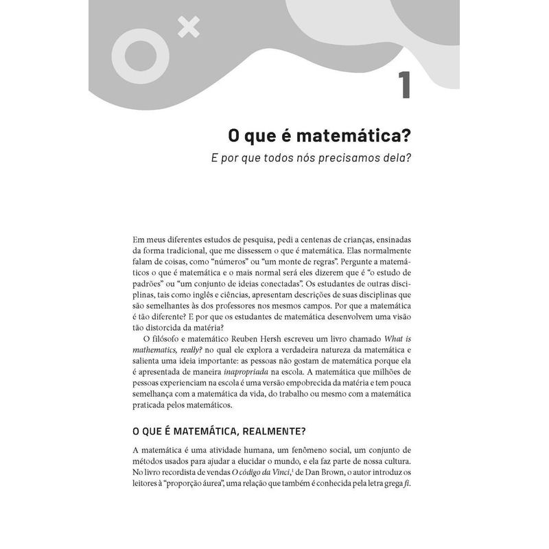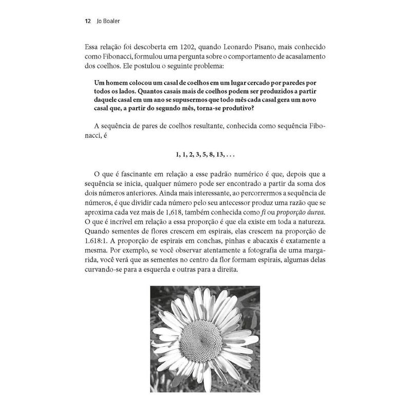 A matemática, mais do que qualquer outra disciplina, tem o poder de minar a confiança dos alunos. As razões para isso se relacionam tanto com os métodos tradicionais de ensino, que ainda prevalecem nas salas de aula, quanto com a ideia fixa da maioria da população, transmitida desde cedo às crianças, de que a matemática é difícil. Este livro aborda como pais e professores podem mudar essa concepção, transformando a aprendizagem da matemática e inspirando os alunos para o sucesso. Nele, Jo Boaler apresenta soluções concretas capazes de transformar as experiências matemáticas dos alunos, incluindo abordagens em sala de aula, estratégias essenciais para os alunos e conselhos para os pais.