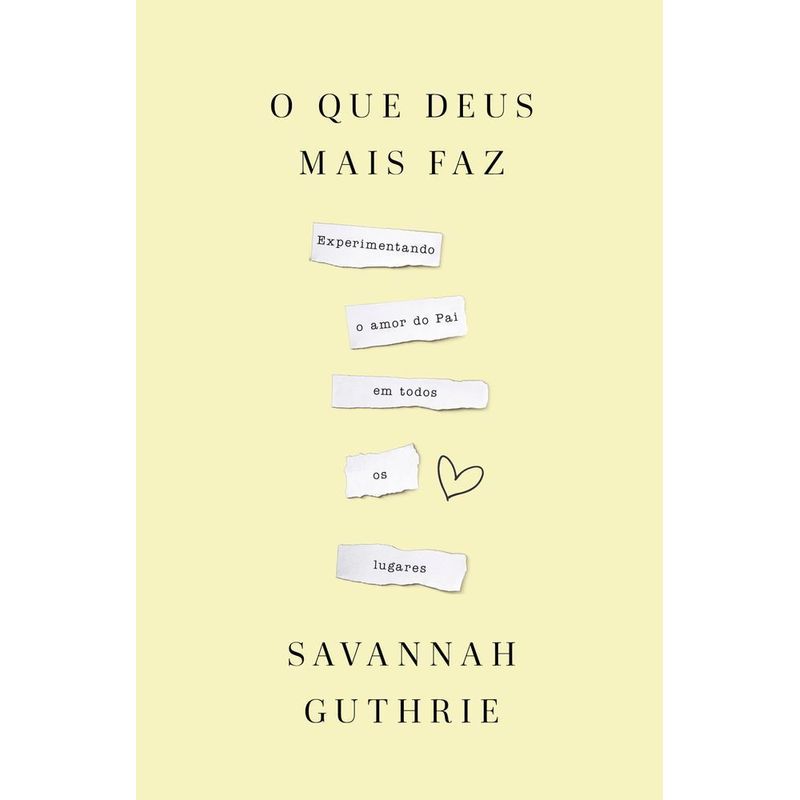 O que Deus mais faz é amar você! Se nós realmente acreditássemos nisso, quão diferentes seria a nossa vida? Mas, como fazer isso? Sozinha, com a angústia de estar procurando algo com as luzes apagadas; ou esperançosa, com a certeza de que Deus está com você em todos os lugares? Afinal, em tempos tão incertos como o que vivemos, acreditar no maior amor do mundo faz sentido? Ao refletir muito sobre esse tema, Savannah Guthrie — através de seus relatos pessoais como filha, esposa, mãe, amiga e jornalista — nos traz uma mensagem profunda e sincera sobre a esperança no amor de Deus ao explorar o espaço que a fé ocupa na simplicidade do cotidiano. O que Deus mais faz mostra claramente como a fé nos leva à verdadeira esperança. E como algo que é produzido de modo cuidadoso e artesanal, este é um livro desenvolvido para o seu crescimento espiritual, pois traz: – Um olhar bíblico renovado para seis pontos essenciais da fé: amor, presença, graça, esperança, gratidão e propósito. – Uma análise sensível e honesta das dúvidas e dos receios sobre o amor de Deus. – Doses de encorajamento para quem jamais perde a esperança, além de alcançar também as pessoas que têm curiosidade e vivem em busca de respostas, assim como para quem vive desacreditada de tudo. Perceba o amor. Sinta a presença. Louve em qualquer circunstância. Receba graça todos os dias. Tenha esperança. Viva o propósito. Lembre-se sempre que o que Deus mais faz é amar você.