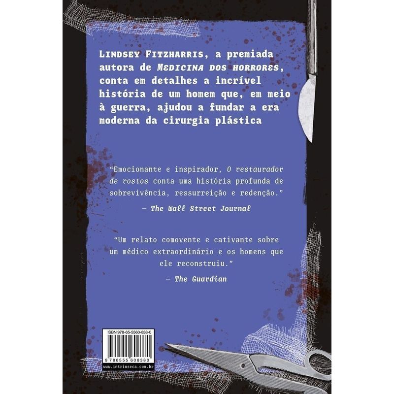 Premiada autora de Medicina dos horrores apresenta a fascinante história real de um cirurgião que reconstruiu a face de heróis feridos da Primeira Guerra Mundial e fundou a era moderna da cirurgia plástica. No início da Primeira Guerra, uma coisa ficou evidente: a tecnologia militar da Europa havia superado suas capacidades médicas. Corpos eram desmembrados, retalhados e envenenados a uma velocidade impressionante, a ponto de os hospitais não darem conta e os sobreviventes ficarem espalhados pelo chão à espera de socorro. Em meio a essa brutalidade, um horror prevaleceu de forma inédita: soldados eram desfigurados por projéteis, estilhaços e chamas, sendo relegados — se sobrevivessem — ao ostracismo e à repulsa em uma sociedade tão ligada à aparência. É aí que um homem entra em cena para mudar de vez essa situação: Harold Gillies, um médico pioneiro que, com coragem e criatividade, mudou para sempre os rumos da cirurgia plástica. Graças aos seus esforços durante um conflito sem precedentes, homens com mandíbulas destruídas, narizes retalhados, bochechas arrebentadas e outras lesões assustadoras recuperaram a própria identidade. Novo livro de Lindsey Fitzharris, a premiada autora de Medicina dos horrores, O restaurador de rostos conta a incrível história desse homem e dos indivíduos que ganharam uma nova chance sob seus cuidados.