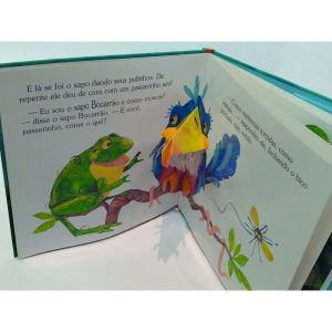 O sapo Bocarrão é um divertido animal que tem uma boca enorme, é muito guloso e vive perguntando aos outros bichos o que eles gostam de comer. Gordão, verdíssimo, de olhos arregalados, ele pula de página em página comendo moscas e jogando conversa fora até o momento em que encontra o terrível crocodilo com seus dentes brancos pontudos – e aí tem que tomar uma atitude radical. De produção esmerada, este livro tem dobraduras-surpresa em todas as páginas, brincadeiras gráficas e cores vibrantes, bem como letras graúdas para facilitar a leitura das crianças recém-alfabetizadas. Este livro é indicado para crianças a partir de 6 meses.