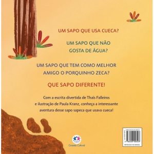Com uma escrita divertida de Thaís Falleiros e ilustração de Paula Kranz, conheça a divertida aventura do sapo sapeca que usava cueca!