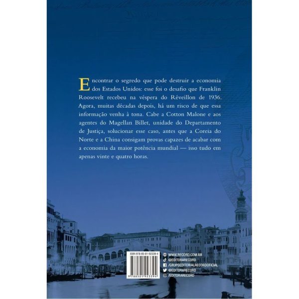A história da lei do recolhimento do imposto de renda dos Estados Unidos remete a uma emenda da Constituição. Mas um segredo do passado pode colocar essa lei em xeque. Agora cabe a Cotton Malone descobrir a verdade em O segredo de Roosevelt, um eletrizante thriller de Steve Berry. Ex-integrante de uma divisão de elite do serviço de informações do Departamento de Justiça, Cotton Malone agora é dono de um sebo na Dinamarca. Ele tem uma rotina de paz e tranquilidade, até o dia em que decide atender a um pedido de Stephanie Nelle, sua antiga chefe: encontrar um sonegador condenado que está foragido O sonegador, junto com um ex-funcionário do Departamento do Tesouro e o herdeiro destituído da Coreia do Norte são as peças principais de outro jogo que se desenrola. E, quando o norte-coreano consegue pôr as mãos em documentos sigilosos do Tesouro dos Estados Unidos — algo que pode abalar a nação norte-americana —, Cotton Malone é lançado em uma perseguição alucinante que vai dos canais de Veneza às remotas montanhas da Croácia. De mistérios envolvendo os Pais Fundadores dos Estados Unidos e uma conversa com o presidente Franklin Roosevelt, passando por segredos esotéricos escondidos no mais famoso símbolo dos Estados Unidos, a investigação arriscada de Cotton Malone levanta uma questão crucial: e se o imposto de renda federal for ilegal? Agora é papel do ex-agente garantir que a resposta não caia em mãos erradas. “Um dos melhores livros de Steve Berry até hoje.” – New York Times