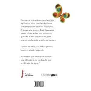 Um retorno — cheio de fantasia e encanto — a um episódio da infância de José Saramago. Durante a infância, acontecimentos à primeira vista parecem banais, mas com frequência adquirem um viés fantástico e cheio de encantamento — e a lembrança desses eventos não se perde mesmo na vida adulta. É o que nos mostra José Saramago nesta nova edição de O silêncio da água, que agora vem com as belas ilustrações da artista espanhola Yolanda Mosquera. Aqui, encontramos o autor ainda menino, durante um dia de pesca, quando um enorme peixe fisga o seu anzol e, assim, começa uma grande aventura. “Voltei ao sítio, já o Sol se pusera, lancei o anzol e esperei. Não creio que exista no mundo um silêncio mais profundo que o silêncio da água.” Indicado para leitores a partir de 7 anos.
