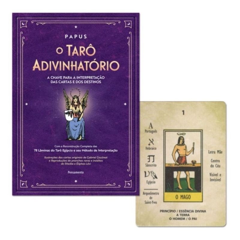 Lançado de forma pioneira em 1920, O Tarô Adivinhatório acumula, há mais de um século, mais de 700 mil exemplares vendidos. Trata-se da grande referência em cartomancia popular editada no país, responsável pela popularização desse tipo de oráculo no Brasil. Agora, a Pensamento traz esta edição totalmente renovada (desde os textos, caixa e cartas) contendo: texto integral de Papus, lançado na França originalmente em 1909, com estudos de Etteilla, Éliphas Lévi e Jean Gaston Bourgeat; contribuições importantes para o leitor brasileiro feitas por Antonio Olívio Rodrigues, fundador da Pensamento e primeiro astrólogo do Brasil; prefácio dos especialistas Leo Chioda (Café Tarot) e Constantino K. Riemma (Clube do Tarô), posfácio de Leo Chioda e a apresentação do editor Adilson Ramachandra. As 78 cartas que acompanham o livro trazem a restauração completa do Tarô Egípcio e seu método de interpretação.