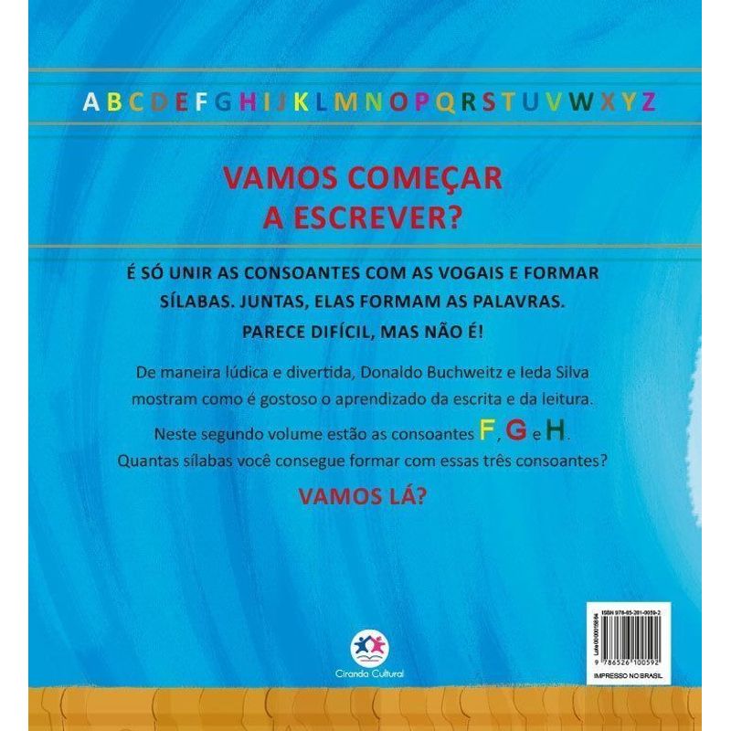 Vamos começar a escrever? É só unir as consoantes com as vogais e formar sílabas. Juntas, elas formam as palavras. Parece difícil, mas não é! De maneira lúdica e divertida, Donaldo Buchweitz e Ieda Silva mostram como é gostoso o aprendizado da escrita e da leitura. Neste segundo volume estão as consoantes F, G e H. Quantas sílabas você consegue formar com essas três consoantes? Vamos lá?