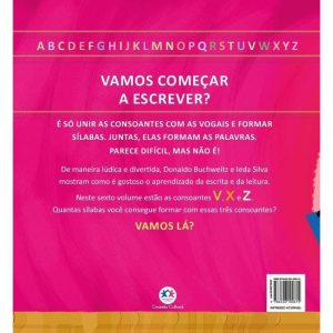 Vamos começar a escrever? É só unir as consoantes com as vogais e formar sílabas. Juntas, elas formam as palavras. Parece difícil, mas não é! De maneira lúdica e divertida, Donaldo Buchweitz e Ieda Silva mostram como é gostoso o aprendizado da escrita e da leitura. Neste sexto volume estão as consoantes V, X e Z. Quantas sílabas você consegue formar com essas três consoantes? Vamos lá?