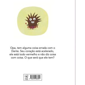 Dante é um elefantinho que está sempre às voltas com a descoberta dos seus processos de crescimento e, às vezes, faz uma confusão danada, sem entender o que está sentindo. Afinal, um friozinho na barriga é emoção ou intoxicação? De uns tempos pra cá ele tem certeza de que foi contaminado por um vírus novo e raro. Sem qualquer motivo ele sua, fica vermelho, gagueja e sai tropeçando por aí. Nervoso, o nosso Dante vai ao médico e, com a chegada de surpresa da elefantinha Lola ao consultório, o doutor mata a charada: “os dois estão doentinhos, daquela doença que faz a gente querer ficar bem juntinho”. Perfeito para crianças pequenas e para aquelas que estão começando a ler, esse livro cheio de imaginação e cores vibrantes traz a quantidade certa de texto por página para não deixar ninguém desistir da história: nem contadores nem leitores iniciantes. Para os contadores de histórias, pais, responsáveis e educadores, o nosso querido Dante irá auxiliá-los na tarefa de despertar nas crianças a atenção e o deslumbramento com os seus sentimentos.