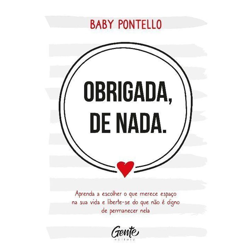 Este livro foi escrito para todas as mulheres que merecem uma segunda chance. Uma quantidade razoável de amor-próprio, autoestima, felicidade e estabilidade são apenas algumas das caraterísticas necessárias para termos uma vida mais leve e feliz. Mas nem sempre esse é o verdadeiro cenário, não é mesmo? Baby Pontello, em seu livro Obrigada, de nada, fala com todas as mulheres que estão estagnadas e precisam do pontapé inicial para se encontrarem nesse mundo confuso e caótico. Com mensagens inspiracionais que levam a reflexões poderosas sobre a autopercepção, ela nos mostra que existe uma solução para tudo e que o caminho para viver uma vida mais feliz não é tão tortuoso quanto parece. Enxergue-se com toda a grandeza e com todo o poder que estão dentro de você e veja quais são as suas verdadeiras qualidades. Olhar-se no espelho não deve ser uma tarefa tão difícil!