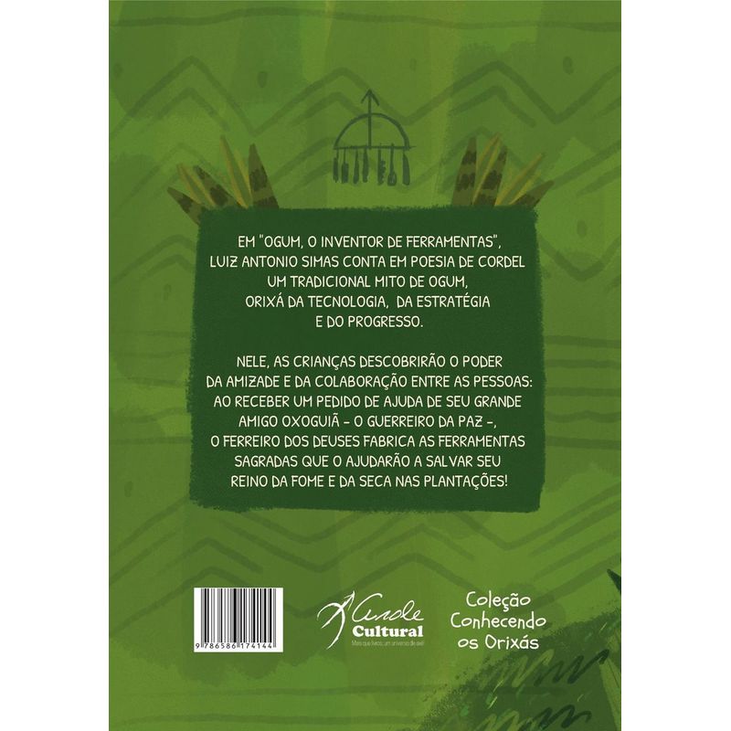 Em “Ogum, o Inventor de Ferramentas”, Luiz Antonio Simas conta em poesia de cordel um tradicional mito de Ogum, Orixá da tecnologia, da estratégia e do progresso. Nele, as crianças descobrirão o poder da amizade e da colaboração entre as pessoas: ao receber um pedido de ajuda de seu grande amigo Oxoguiã – o Guerreiro da Paz -, o ferreiro dos deuses fabrica as ferramentas sagradas que ajudarão seu amigo a salvar seu reino da fome e da seca nas plantações! O livro faz parte da coleção “Orixás para Crianças”, composta por 18 livros escritos em linguagem simples e totalmente ilustrados, nos quais a cada volume um Orixá ganhará destaque com um de seus itáns – suas lendas e mitos tradicionais das religiões de matriz africana -, especialmente adaptados para as crianças em idade de alfabetização, ensinando valores fundamentais sobre amizade, respeito às diferenças, amor, família, generosidade, identidade, auto estima e muito mais!