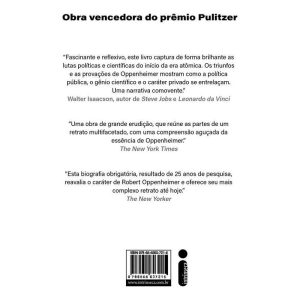 Vencedora do Pulitzer, obra que baseou novo filme de Christopher Nolan é um retrato vívido e completo do homem que criou a bomba atômica Oppenheimer é a primeira biografia completa do “pai da bomba atômica”. J. Robert Oppenheimer foi o brilhante e carismático físico que liderou os esforços para desenvolver uma arma nuclear em favor de seu país durante a guerra. Logo após o bombardeamento de Hiroshima, tornou-se o cientista mais famoso de sua geração — uma das figuras icônicas do século XX, a personificação do homem moderno que enfrenta as consequências do progresso científico. No entanto, Oppenheimer em seguida se opôs ao uso de bombas nucleares e, em especial, da bomba de hidrogênio. Na hoje quase esquecida histeria do início dos anos 1950, as ideias dele contrariaram poderosos defensores de um avanço nuclear maciço, e, como consequência, foi considerado indigno de confiança para lidar com os segredos do governo dos Estados Unidos. Este livro narra a vida de Oppenheimer em detalhes reveladores e sem precedentes. Construído após numerosas pesquisas, baseou-se em milhares de registros e cartas encontrados em arquivos nos Estados Unidos e no exterior, em extensos relatórios do FBI e em cerca de uma centena de entrevistas com amigos, parentes e colegas de Oppie. Ao longo das páginas, acompanhamos os primeiros anos escolares dele; a ida para Berkeley, Califórnia, onde estabeleceu, durante a década de 1930, a principal escola norte-americana de física teórica e se envolveu profundamente com causas de justiça social e muitos adeptos do comunismo; o período em Los Alamos, Novo México, onde transformou um ermo planalto escarpado no laboratório de armas nucleares mais potente do mundo — e onde ele próprio foi transformado. Oppenheimer é uma rica evocação dos Estados Unidos de meados do século XX, um retrato novo e atraente de um homem notável, ambicioso, complexo e imperfeito cuja história conecta-se profundamente aos principais acontecimentos de seu tempo: a Depressão, a Segunda Guerra Mundial e a Guerra Fria. Uma perfeita combinação de biografia e história, é um livro essencial para compreendermos nosso passado recente — e as escolhas que temos com relação ao futuro.