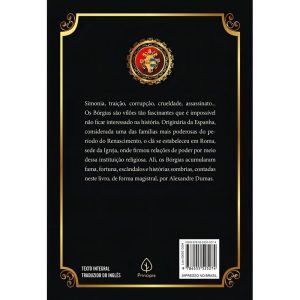 Simonia, traição, corrupção, crueldade, assassinato… Os Bórgias são vilões tão fascinantes que é impossível não ficar interessado na história. Originária da Espanha, considerada uma das famílias mais poderosas do período do Renascimento, o clã se estabeleceu em Roma, sede da Igreja, onde firmou relações de poder por meio dessa instituição religiosa. Ali, os Bórgias acumularam fama, fortuna, escândalos e histórias sombrias, contadas neste livro, de forma magistral, por Alexandre Dumas.