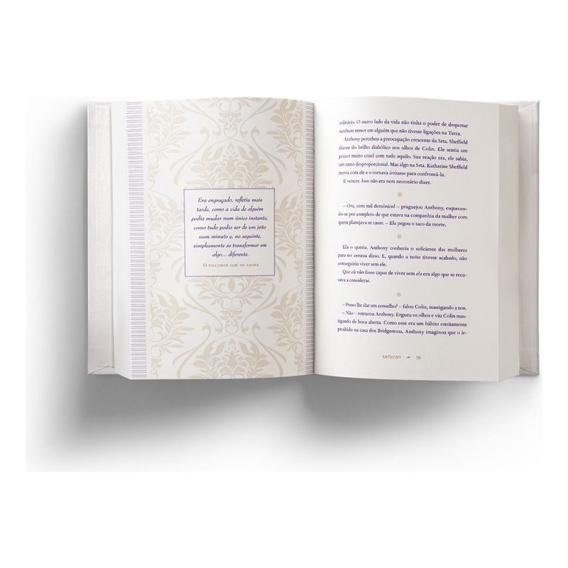 Esta exuberante coletânea – com introdução de Julia Quinn e projeto gráfico especial – reúne citações de lady Whistledown e as passagens mais inesquecíveis do universo dos Bridgertons, a família que deu origem à aclamada série da Netflix Lady Whistledown acompanhará você pelos episódios mais dramáticos, românticos e divertidos vividos pelos integrantes do mundo criado por Julia Quinn. É um presente perfeito para os fãs tanto dos livros quanto da série adaptada pela Shondaland. Cada capítulo tem um protagonista diferente e inclui uma apresentação inédita de lady Whistledown, assim como citações do próprio personagem e comentários que outros personagens fizeram sobre ele ao longo de todos os romances da coleção, oferecendo uma visão completa dos membros mais queridos desse elenco formidável. De Daphne a Simon, passando por Anthony, Penelope, Colin, Eloise e a adorada matriarca Violet, este livro mostra os Bridgertons de uma perspectiva original e intimista. Você terá a oportunidade de reviver as histórias e seguir (ou não) os conselhos dos seus personagens preferidos sobre relacionamento, família, etiqueta e moda.