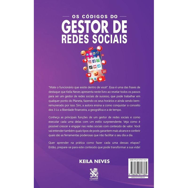 Uma grande maioria das pessoas pensam que o gestor de s sociais resume-se em fazer posts na Internet. Há outros que erroneamente ainda fazem artes para essas publicações. O gestor de s sociais vai muito além disso. Esse profissional tão desejado no mercado atual é responsável; acima de tudo; em criar estratégias de relacionamento com a audiência para o perfil crescer e engajar. Identificar a persona e quais são os desejos; os sonhos e as dores desta audiência é um dos principais objetivos deste profissional. Isso porque apenas entendendo a fundo essas características poderá criar os melhores conteúdos de impacto para apresentar. Neste livro; Keila Neves – uma das maiores especialistas do país neste assunto – vai direto ao ponto e explica; em detalhes; tudo o que você precisa saber para ser um Gestor de s Sociais de sucesso.