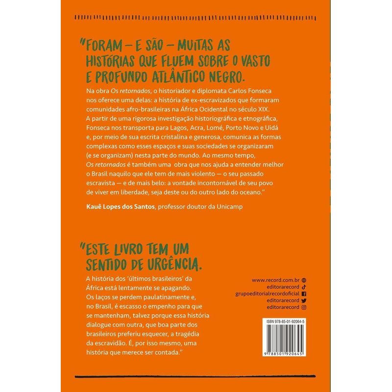 A história pouco conhecida dos retornados, os “brasileiros na África” que voltaram ao seu continente levando consigo influências da cultura brasileira que sobrevivem na culinária, nas celebrações, na religião e no cotidiano de diversas famílias em países como Togo, Nigéria e Benim. Em Os retornados: A história dos ex-escravizados que deixaram o Brasil e formaram comunidades afro-brasileiras no golfo do Benim, Carlos Fonseca nos conta sobre os retornados, escravizados libertos e seus descendentes que retornaram à África, voluntariamente ou obrigados — deportados da Revolta dos Malês, por exemplo —, em um movimento que se iniciou a partir de 1835 e se estendeu até o século XX. São os tabons, de Gana, os agudás, do Benim, e tantos outros em países diversos do continente africano. O autor analisa as motivações por trás dessa decisão e os desafios enfrentados por aqueles que embarcaram nessa jornada de retorno à África. Nestas páginas, Carlos Fonseca nos apresenta a personagens fascinantes, cada um com sua jornada de autodescoberta e reconexão com a terra de seus antepassados, muitos em busca da cidadania que o Brasil tanto lhes negava. São muitas as complexidades históricas, culturais e sociais que envolvem esse movimento de retorno, e o autor nos oferece relatos que nos ajudam a entender essa relação tão delicada entre os retornados, seus descendentes e o Brasil. Os relatos pessoais e entrevistas revelam as nuances da experiência afro-brasileira na África. Da busca pelas raízes ancestrais perdidas à adaptação a novos contextos sociais e culturais, as histórias contadas neste livro tratam de questões de pertencimento, legado e identidade. No entanto, Carlos Fonseca também nos mostra a outra face dessa história: a falta de interesse das gerações mais jovens na preservação do legado brasileiro na África. Gerações que resistem a se identificar com esse legado que se formou sobre as bases da escravidão, com ancestrais que foram tanto escravizados como escravizadores. Desde o apagamento de sobrenomes brasileiros à ruína de prédios construídos por mãos afro-brasileiras, aos poucos essa herança vai se apagando, embora ainda haja esforços para mantê-la. Dessa maneira, Os retornados traz um olhar aprofundado sobre o fenômeno do retorno de africanos e afro-brasileiros à África e serve como um lembrete poderoso da resiliência e da determinação humanas em busca de conexão e pertencimento verdadeiros. É uma leitura indispensável para aqueles interessados na diáspora africana e nas complexas interseções entre identidade, história e migração. “Este livro tem um sentido de urgência. Sua leitura é não apenas uma tarefa prazeirosa, pelo estilo agradável, talentoso e fluido do autor, mas também uma necessidade premente, de captar um pedaço da história e da cultura brasileiras que rapidamente se desvanece no tempo e no espaço de outro continente.” Do prefácio de Laurentino Gomes.