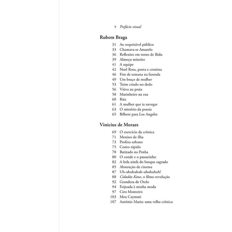 Esta antologia é um convite à leitura de textos que resistiram à passagem do tempo. Além de reunir seis mestres da crônica, do lírico Rubem Braga ao rebelde José Carlos Oliveira, projeta um olhar inteiramente novo sobre a cultura brasileira. As noventa crônicas que compõem o volume formam um riquíssimo painel dos anos 1930 até a virada do século XXI: é o retrato de toda uma época. Os sabiás da crônica celebra a força da amizade. E se engana quem pensa que a trama coletiva apaga o traço pessoal dos cronistas – pelo contrário, eles surgem aqui de corpo inteiro. O roteiro sentimental parte de cada cidade natal até desembarcar no Rio de Janeiro na década de 1940. O saber literário se mistura então ao sabor das experiências cotidianas: a roda viva de bairros e bares, as conversas sobre música e cinema, as receitas de feijoada, a poesia do futebol, tudo decantado numa prosa crítica e bem-humorada. Organizado por Augusto Massi, o volume traz um prefácio visual com fotografias de Paulo Garcez que ilustram fielmente a atmosfera da antologia, revelando a intimidade do encontro que nos trouxe até aqui.