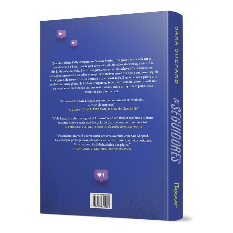 Quando Helena Kelly desapareceu, Seneca Frazier, uma jovem envolvida em um dedicado a buscar pistas para casos não solucionados, decidiu que iria até o fundo daquele mistério. E ela conseguiu… ou era o que achava. Conforme surgem revelações surpreendentes sobre o grupo de detetives amadores que a auxiliou naquela investigação, de repente Seneca começa a questionar tudo. E quando uma garota que poderia ser irmã gêmea de Helena desaparece, Seneca tem certeza: entre os milhares de seguidores que Chelsea tem nas s sociais, existe um que tem planos mais sombrios para a influencer. “Era o dia perfeito para uma festa…” Até Chelsea Dawson, de vinte e um anos, desaparecer. A influencer foi vista pela última vez se divertindo em uma festa de verão no litoral de Nova Jersey com os amigos. Mas, depois de uma briga feia com o ex-namorado, ela some sem deixar vestígios. Quando Seneca, Maddox, Aerin e Madison recebem uma pista sobre esse suposto sequestro, eles percebem um detalhe sobre a vítima: ela é muito parecida com irmã de Aerin, Helena, morta cinco anos antes. Seneca está convencida de que sabe quem a matou e não consegue se livrar da sensação de que a mesma pessoa está envolvida no desaparecimento de Chelsea. Desesperada por respostas sobre as duas garotas e em busca da verdade por trás da morte de sua mãe, Seneca não vai parar até descobrir se os casos estão interligados. Depois que Maddox recebe um convite para uma visita ao litoral de ninguém menos que seu principal suspeito, o grupo de investigadores amadores começa uma nova e intensa perseguição. Cheio de segredos surpreendentes, reviravoltas e revelações comprometedoras, o segundo livro da série Os amadores, da autora bestseller do New York Times Sara Shepard, segue o rastro de um assassino brilhante e das pistas que inevitavelmente são deixadas quando alguém tem tantos seguidores.