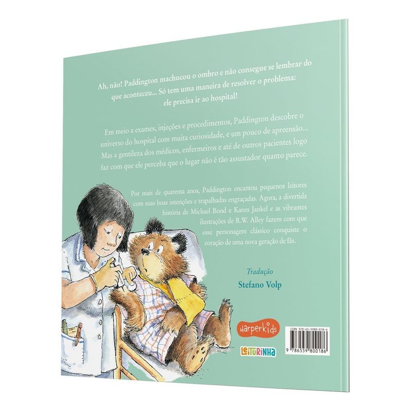 Clássico mundial da literatura infantil, Paddington precisa ir ao hospital é um ótimo livro para conversar com as crianças sobre saúde e cuidados médicos de forma lúdica e descontraída.Quando os Brown encontram o urso Paddington desacordado na grama, incapaz de se lembrar de onde está ou até mesmo o que a palavra “pão” significa, eles percebem imediatamente que algo está errado e chamam uma ambulância. É a primeira vez que o urso precisa ir ao hospital e os médicos e enfermeiros logo descobrem que ele é um paciente bem incomum!Em meio a exames, injeções e procedimentos, Paddington descobre o universo do hospital com muita curiosidade, e um pouco de apreensão, mas a gentileza dos médicos, enfermeiros e até de outros pacientes logo faz com que ele perceba que o lugar não é tão assustador quanto parece.Por mais de quarenta anos, Paddington encantou pequenos leitores com suas boas intenções e trapalhadas engraçadas. Agora, a divertida história de Michael Bond e Karen Jankel e as vibrantes ilustrações de R.W. Alley fazem com que esse personagem clássico conquiste o coração de uma nova geração de fãs.