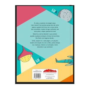 Às vezes, as palavras nos pregam peças, não é mesmo? Isso acontece porque elas são muito sapecas e gostam de brincar com a nossa mente: elas se escondem, mudam de lugar sutilmente, sem aviso prévio, e depois aparecem de novo! Neste livro, você vai descobrir o que acontece quando as palavras começam a brincar de troca-letras. Elas fazem uma bagunça danada… Então, prepare-se: a cada página, um pequeno desafio será lançado. Ao virar a folha, preste atenção nas mudanças, observe as ilustrações e tente desvendar o que aconteceu!