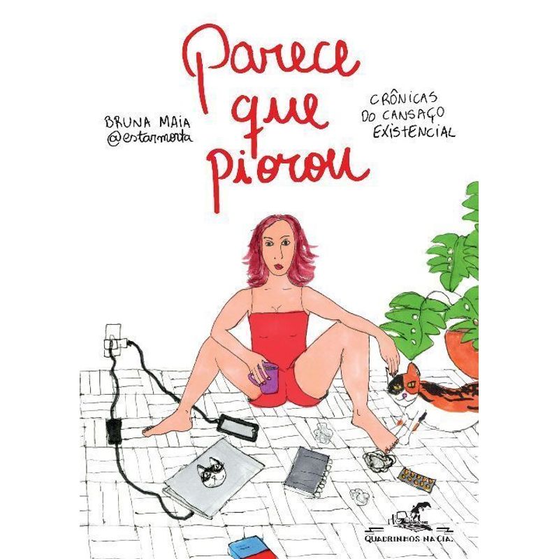 @estarmorta, a persona criada por Bruna Maia, é um sucesso nas s sociais. Com histórias inéditas e o melhor do seu , Parece que piorou faz um verdadeiro inventário das aflições de mulheres e homens do nosso tempo. Com um humor cáustico e sempre pronta para rir de si mesma, Bruna Maia deu vida à @estarmorta, perfil de enorme sucesso nos e no Twitter. Seus desenhos maravilhosamente mal-acabados falam de amor, sexo, carreira, transtornos mentais, feminismo e dilemas geracionais de um jeito inteligente e terrivelmente irônico. Mente, corpo, trabalho, relacionamento, amizade e espiritualidade: a partir de temas como estes, a autora coloca em cena personagens que poderiam estar ao nosso lado agora, gente que encontramos todos os dias pelas ruas dos grandes centros urbanos de nosso país. Cronista afiada das contradições, dores e delícias de ser mulher neste início de século XXI, Bruna Maia faz um retrato mordaz dos costumes, um painel hilário onde a comédia humana ganha cor e forma. Não estava bom. Mas parece que piorou. “É a sororidade consciente e crítica, hilariante na escrita e nos desenhos.” — Mario Sergio Conti. “Passei uma vida inteira ‘paralisada pela montanha de pequenos problemas que me impediam de refletir sobre o meu grande objetivo’. Diariamente, o Paniquinho vem dizer horrores na minha orelha, me desmerecendo completamente. Vivo dividida entre ‘as águas profundas da depressão’ e o ‘lago paradisíaco dos excessos autodestrutivos’. Vai ver que me identifiquei tanto com este livro porque sou ‘taurina, nascida em 29 de abril’. A verdade é que Bruna Maia é genial, necessária, e a ‘gentrificação ilustradinha’ talvez seja o melhor tratado urbanístico-social já feito nesse país.” — Tati Bernardi