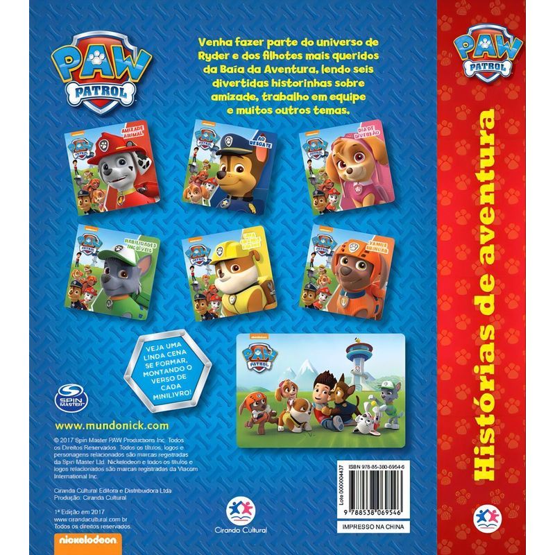 Venha fazer parte do universo de Ryder e dos filhotes mais queridos da Baía da Aventura. São seis divertidas historinhas sobre amizade, trabalho em equipe e muitos outros temas. Veja uma incrível cena se formar, montando o verso de cada minilivro!