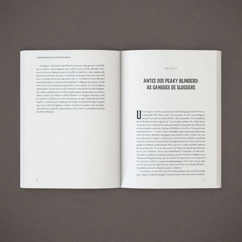 O aclamado drama da Netflix sobre a gangue mais notável de Birmingham chega à sua última temporada… Mas o que realmente há por trás da série? Como viviam os Peaky Blinders reais, nessa cidade industrial do norte da Inglaterra? Conheça a origem dessa história, contada por alguém cuja família conviveu com os próprios Peaky Blinders — em uma obra que inclui fotos históricas dos verdadeiros integrantes da gangue e depoimentos históricos sobre eles! Os Peaky Blinders que conhecemos graças à série de TV transbordam drama e medo. Elegantemente vestidos, os carismáticos — mas profundamente falhos — Thomas Shelby e aliados se tornaram famosos por seus feitos atrozes, cujos desdobramentos resultaram em guerras sangrentas contra gangues irlandesas, em embates contra autoridades, em esquemas de extorsão de dinheiro e no competitivo ambiente de apostas legais e ilegais nas pistas de corrida de cavalos na virada do século XIX para o XX. Mas quem eram os verdadeiros Peaky Blinders? Eles realmente existiram? O renomado historiador social Carl Chinn passou décadas procurando respostas para essas perguntas. Agora, ele revela a verdadeira história sobre esse impressionante grupo de “desordeiros”, que sua família conheceu em primeira mão — incluindo relatos sobre os verdadeiros Billy Kimber, Darby Sabini e Alfie Solomons, entre outros personagens icônicos da série baseados em personalidades reais. Você descobrirá até mesmo qual família pode ter servido de inspiração para os Shelby. Reunindo uma gama notavelmente ampla de fontes originais e incluindo imagens pouco vistas dos verdadeiros integrantes da gangue, Peaky Blinders: a história real adiciona uma nova dimensão à realidade do submundo de Birmingham e os fatos por trás de sua ficção. Dados comerciais sobre a série Peaky Blinders Trailer da sexta (e última) temporada conquistou 12 milhões de visualizações em apenas dois meses! Embora esta seja a última temporada da série, o criador Steven Knight confirmou que ela será adaptada para uma peça de teatro e terá seu final concluído no cinema. 5,7 milhões de seguidores acompanham o perfil oficial de Peaky Blinders no Instagram. Vencedora na categoria Melhor Série de Drama do TV Choice Awards 2018 e 2020 Vencedora dos prêmios BAFTA 2018 (Melhor série dramática) e BAFTA 2014 (nas categorias Direção de ficção e Fotografia e iluminação) Vencedora do British Screenwriters’ Awards 2016 na categoria Melhor Roteiro de Drama Britânico para TV Vencedora do Irish Film and Television Awards 2017 nas categorias Melhor Ator Protagonista e Melhor Figurino Vencedora do National Television Awards UK 2020 nas categorias Melhor Drama e Melhor Performance em Drama Vencedora do Biarritz International Festival of Audiovisual Programming 2014 nas categorias Melhor Atriz, Melhor Ator e Melhor Trilha Sonora Sobre o autor: Carl Chinn, PhD e MBE — Membro da Ordem do Império Britânico, que o gratificou por suas contribuições para a história local e instituições de caridade — é um historiador social, escritor, palestrante e professor. Filho e neto de corretores de casas de apostas ilegais, ele mesmo trabalhou no ramo até 1984. Do outro lado da família, sua mãe vem de uma linhagem de operários em Aston. A escrita de Chinn abarca profundamente seu histórico enquanto membro de uma família da classe trabalhadora de Birmingham, e ele defende com fervor que a história deve ser democratizada porque cada pessoa deixou sua marca na história e, portanto, tem uma história para contar. Leia também: Minha vida com Pablo Escobar, Jhon Jairo Velásquez A sabedoria de Tyrion Lannister, Lambert Oaks A compacta história das guerras, A. A. Evans e David Gibbons