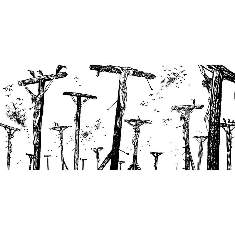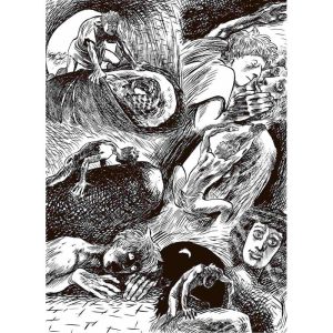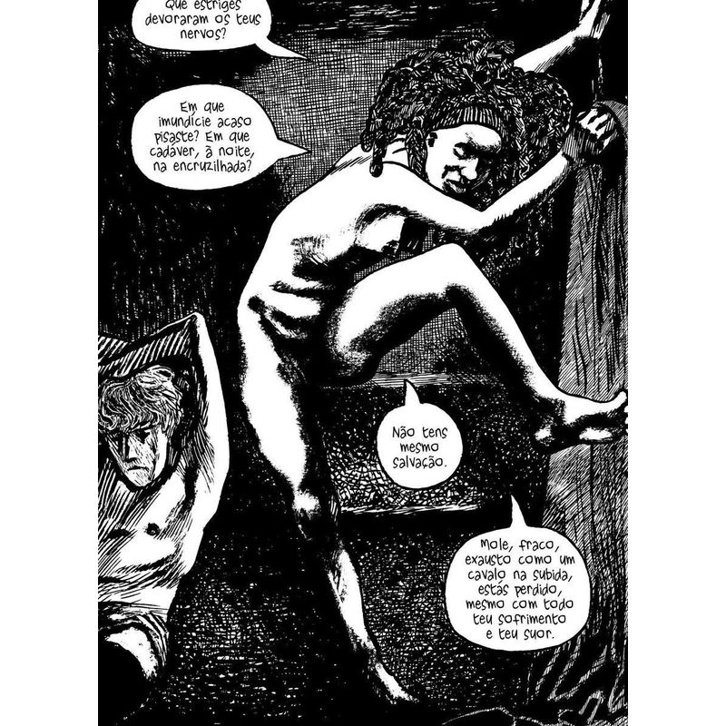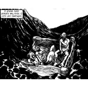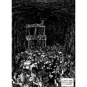 Considerado um dos maiores nomes do quadrinho francês contemporâneo, Blutch mistura seu traço alucinante com elementos do clássico Satiricon, de Petronio, William Shakespeare, Fellini e Robert Crumb . Durante o Império Romano, um grupo de ladrões descobre uma bela mulher em uma caverna, presa em um gigantesco bloco de gelo. Eles discutem o que fazer com ela, mas se afundam em intrigas e acusações. Apaixonado pela mulher congelada, o jovem Públio Cimbro inicia uma estranha e perigosa jornada para a capital. Frases de imprensa: “Blutch é um mestre. Nenhum outro cartunista se apresenta com um virtuosismo tão casual.” – Craig Thompson, autor de Retalhos (Quadrinhos na Cia., 2009) “Ambíguo e aterrorizante, este é um conto brutal, não apenas de perseverança, traição e amor equivocado, mas também de um reino que não pode mais se sustentar” – The Guardian “Nas mãos do incrível Sr. Hincker (que usa o pseudônimo Blutch), um simples lápis assume as qualidades de uma varinha mágica.” – The New York Times “A surrealista visão de Blutch do Satyricon é alimentada por esse feitiço de loucura alienada. Diversas vezes, Publius faz uma escolha errada após a outra. Ele rejeita amantes em favor da Deusa, mas às vezes rejeita a Deusa em favor das amantes. Sua ideologia, como a violência nos quadrinhos de Blutch, é dispersa, desesperada e se estica para arranhar e estrangular a carne que envolve o ser.” – The Comics Journal “Requintada, a arte de Blutch traduz batalhas, orgias e conversas em linhas densas e manchadas.” – Publishers Weekly “Blutch arremessa tinta em um impulso de fúria e luxúria, esboçando uma jornada que é parte mito, parte pesadelo e parte romance dramático.” – The Globe “Existem certas fadas que se apoiaram sobre certos berços para conceder o dom da música para Mozart e o dom do desenho para Blutch” – Patrice Leconte, cineasta francês e quadrinista da revista Pilote “Quando começou a serializar Péplum em 1996, Blutch era um talento para ficar de olho, um rapaz de 28 anos admirado pela expressividade de seus traços e seus experimentos com a lógica onírica e o surrealismo (chamavam ele de “meio Jacques Demy e meio Buñuel), mas ainda não havia se tornado o herói de uma geração de cartunistas.” – Edward Gauvin, tradutor da edição norte-americana