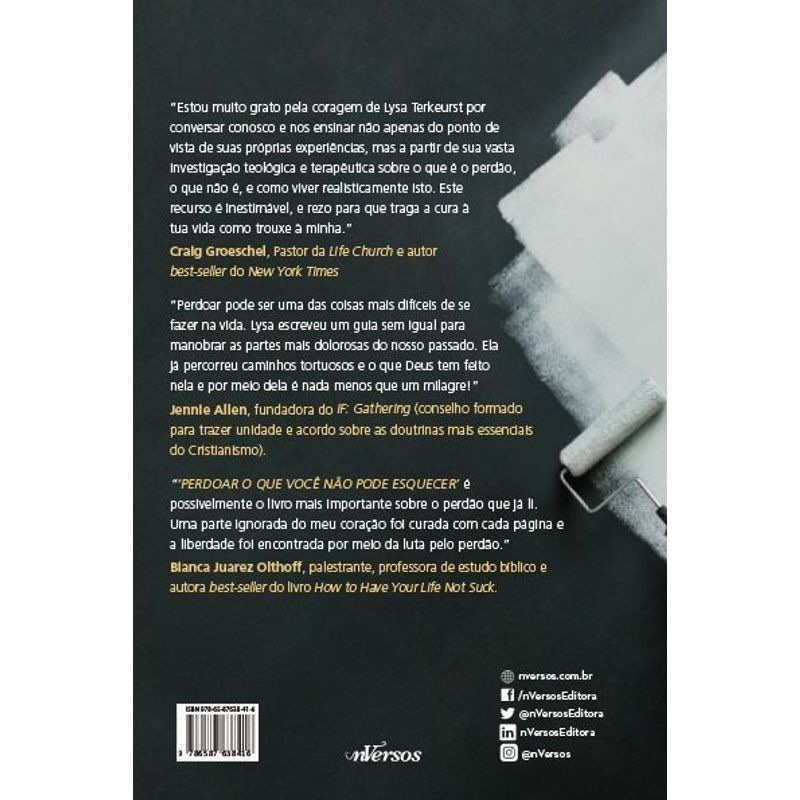 Alguma vez você já se sentiu preso em um ciclo de dor não resolvido? Repetindo ofensas em sua mente? Você sabe que não pode continuar assim, mas não sabe o que fazer para sair dessa situação. A autora Lysa Terkeurst tem lutado através desta jornada. De formas surpreendentes, ela descobriu como deixar de lado o ressentimento e ultrapassar a resistência em perdoar as pessoas. Com profunda empatia, discernimento terapêutico e ricos ensinamentos espirituais, que foram adquiridos por meio de aprendizados durante mais de 1.000 horas de estudos teológicos, Lysa irá ajudá-lo a perdoar o que não pode ser esquecido.