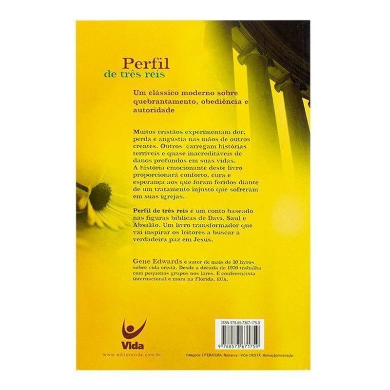 Um clássico moderno sobre quebrantamento, obediência e autoridade. Muitos cristãos experimentam dor, perda e angústia nas mãos de outros crentes. Outros carregam histórias terríveis e quase inacreditáveis de danos profundos em suas vidas. A história emocionante deste livro proporcionará conforto, cura e esperança aos que foram feridos diante de um tratamento injusto que sofreram em suas igrejas. Perfil de três reis é um conto baseado nas figuras bíblicas de Davi, Saul e Absalão. Um livro transformador que vai inspirar os leitores a buscar a verdadeira paz em Jesus.